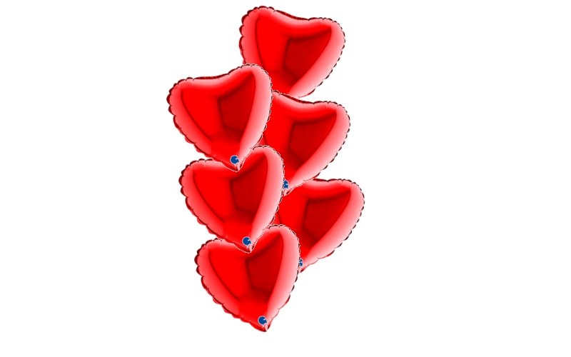 Choice of 6-24  Red Foil Hearts 46cm balloons helium filled weighted and arranged in bunches of 6.