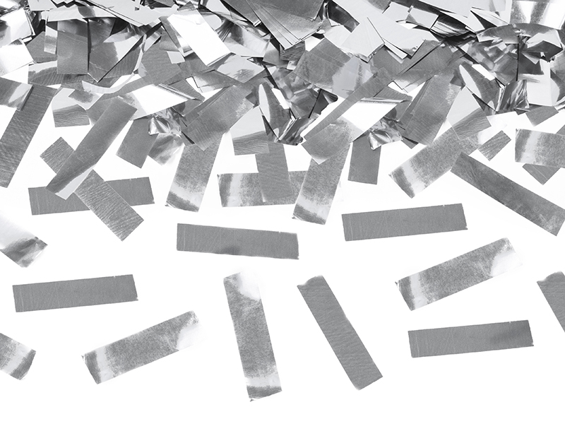 Confetti cannon shooting out metallic confetti, silver, length 60 centimeters.