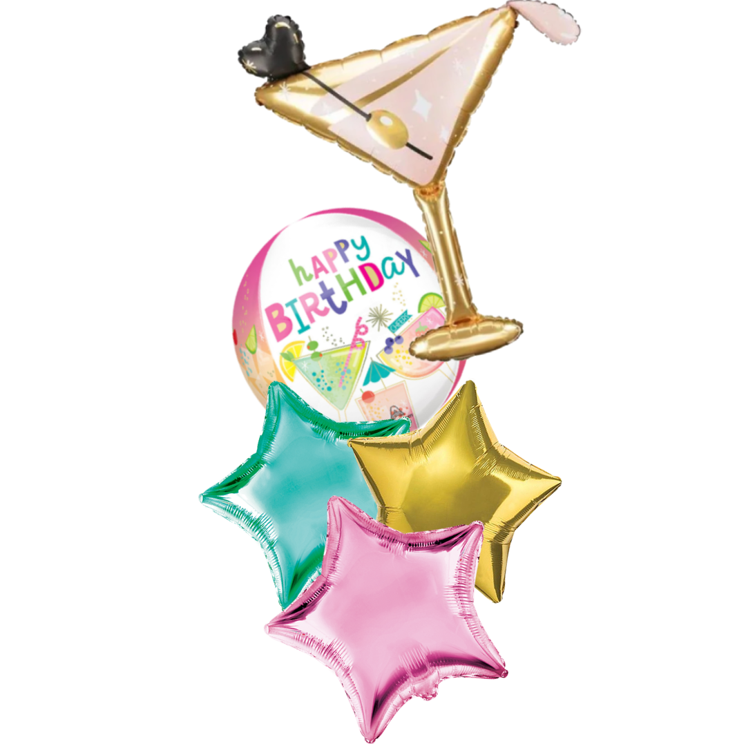 Martini Bouquet consists of x1 Martini Supershape x1 Cocktail party orbz x3 foil stars 18in.