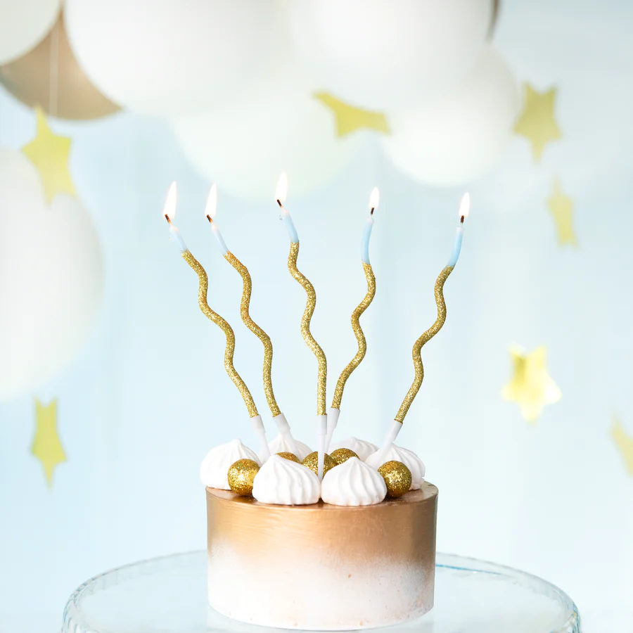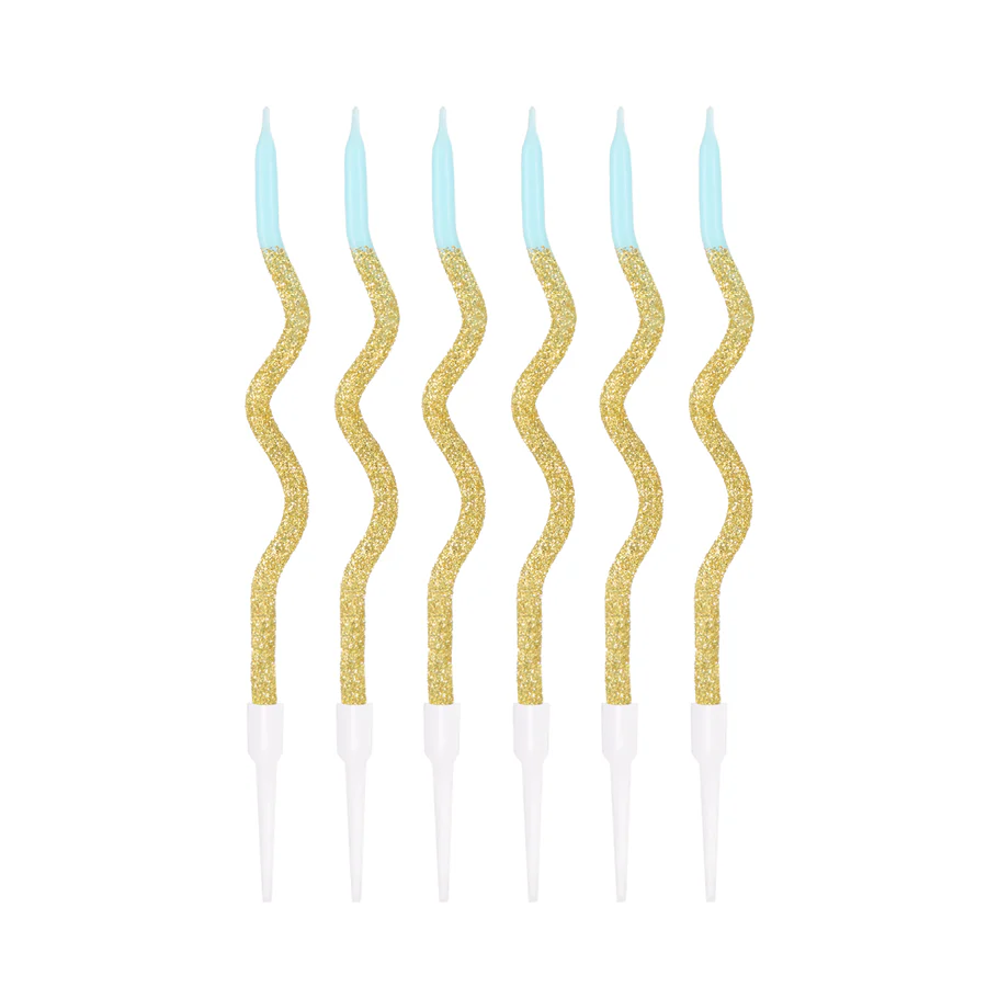 Spiral birthday candles, gold and blue, 6 pcs