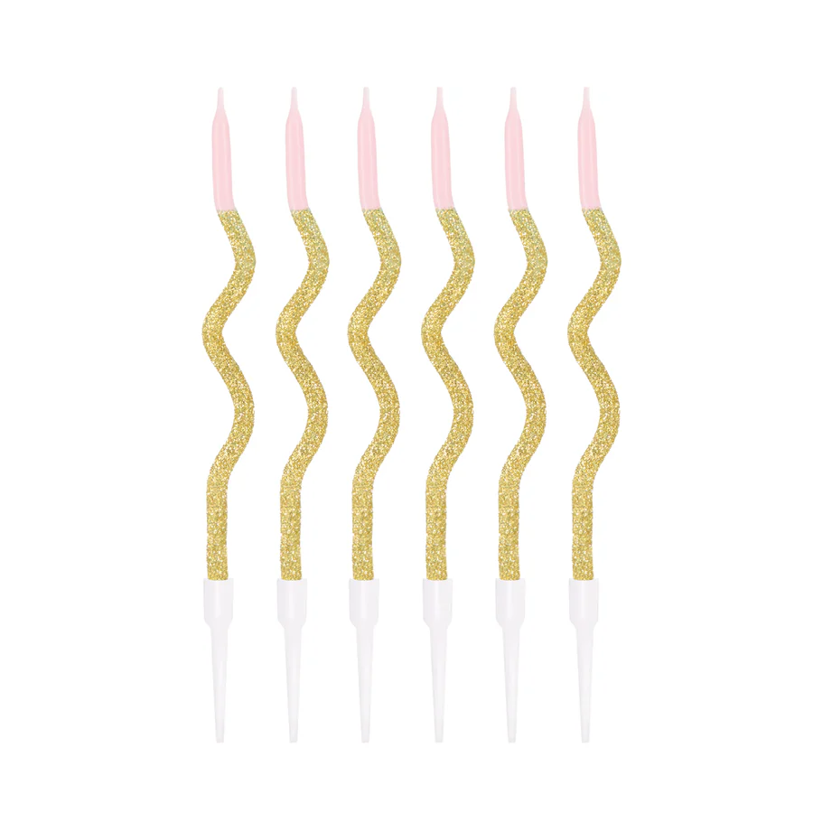 Spiral birthday candles, gold and pink, 6 pcs quantity