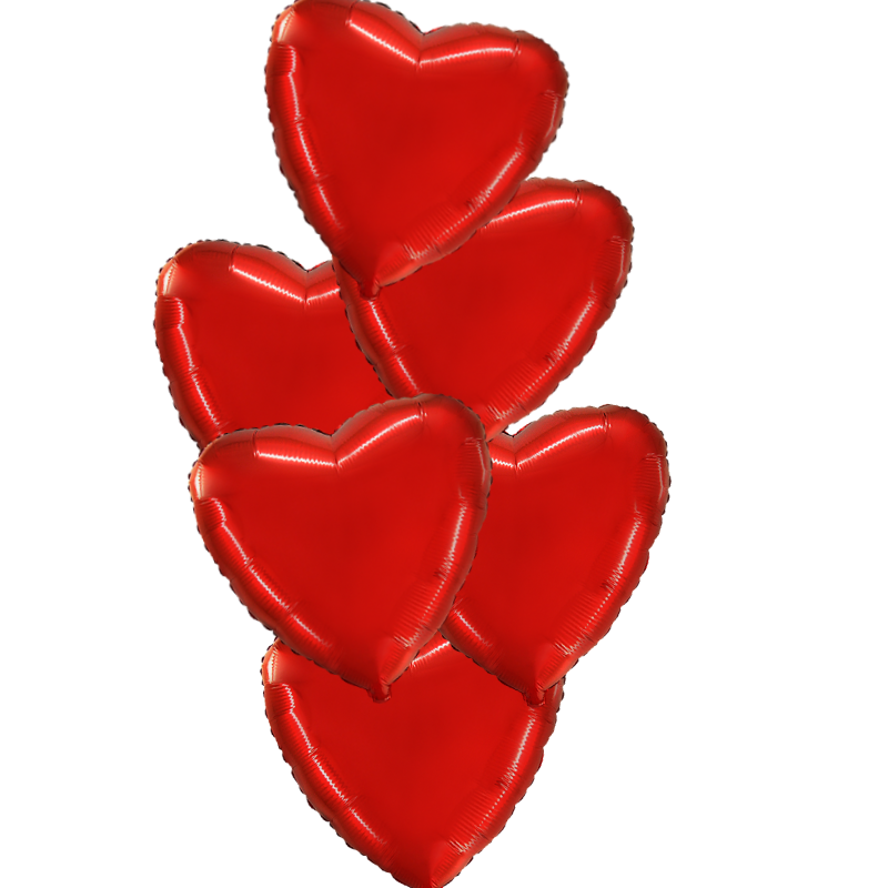 Choice of 6-24Â Red Foil Hearts 46cm balloons helium filled weighted and arranged in bunches of 6.