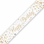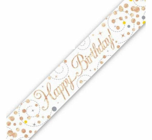 9ft Banner Sparkling Fizz Birthday White & Rose Gold Holographic