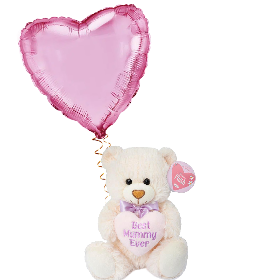Best Mummy Ever Bear Plush & Jumbo Heart Bundle consists of a cute cuddly bear plushie along with a jumbo heart balloon.