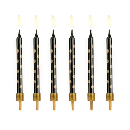 Birthday candles black with golden dots 12pcs quantity