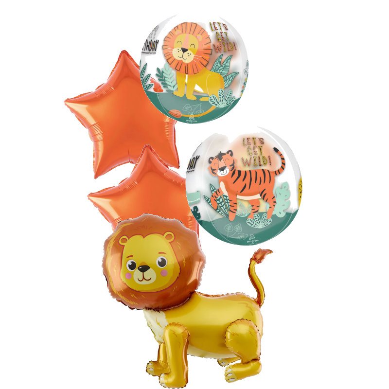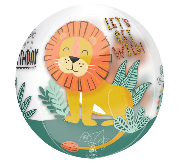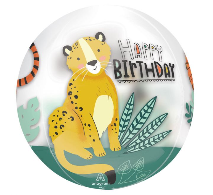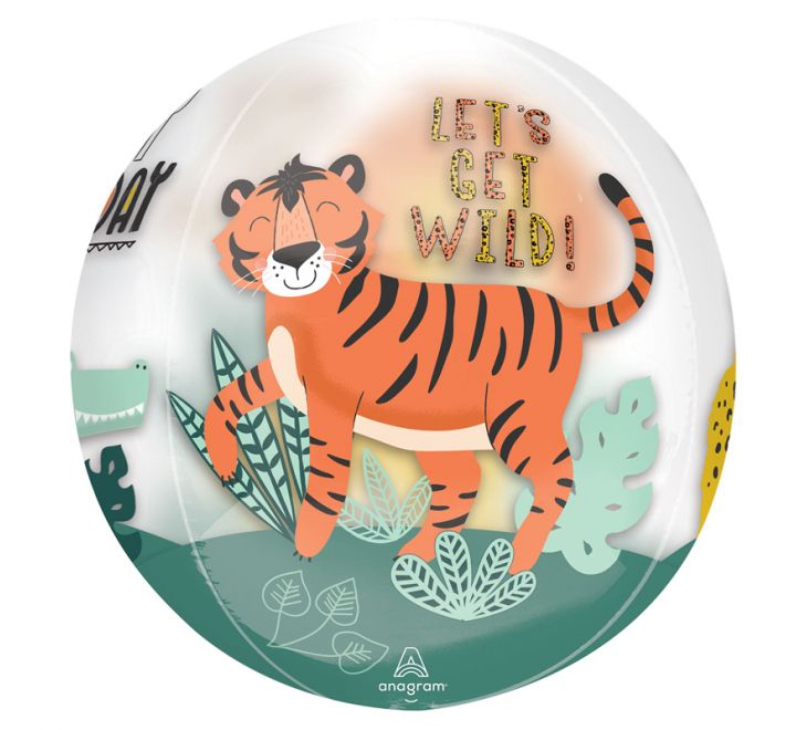 2 Get wild clear Orbz 15inch / 37.5cm dipicting four jungle animals on each panel