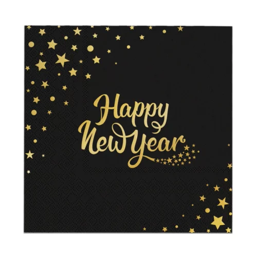 Happy New Year napkins, black, 10 pcs