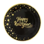 Happy New Year paper plate, black, 9 inches, 6 pcs.