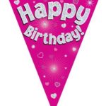 PARTY BUNTING HAPPY BIRTHDAY PINK HOLOGRAPHIC 11 FLAGS 3.9M