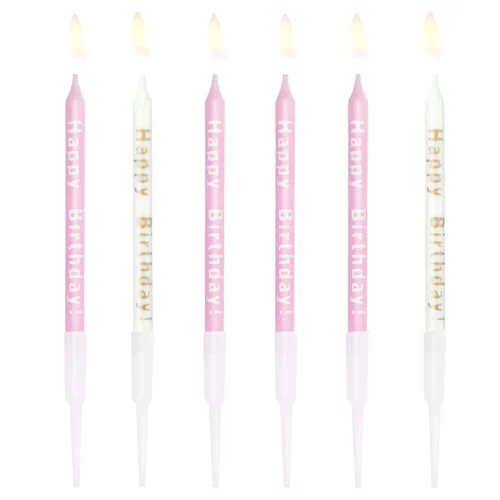 Pink birthday candles with the inscription Happy Birthday 10pcs