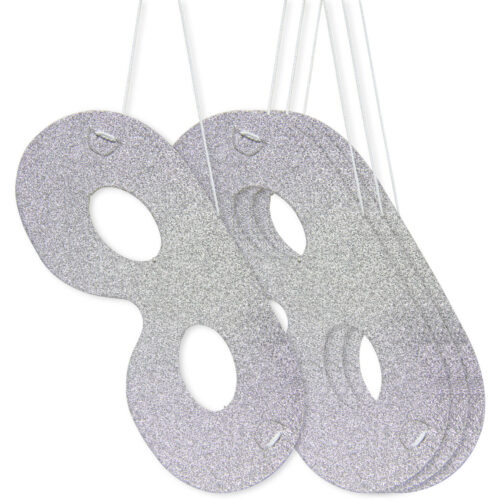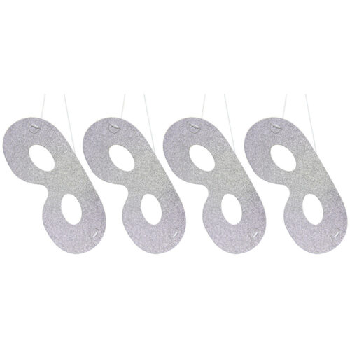 Silver coloured Glitter Masks – 4 pieces. Contents: 4 masks. Colour: Silver. Theme parties, Carnival. This mask is 21 cm high and 7,5 cm wide. The mask is made of carton.