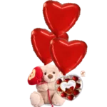 - 3 foil red hearts 45cm helium filled weighted and arranged